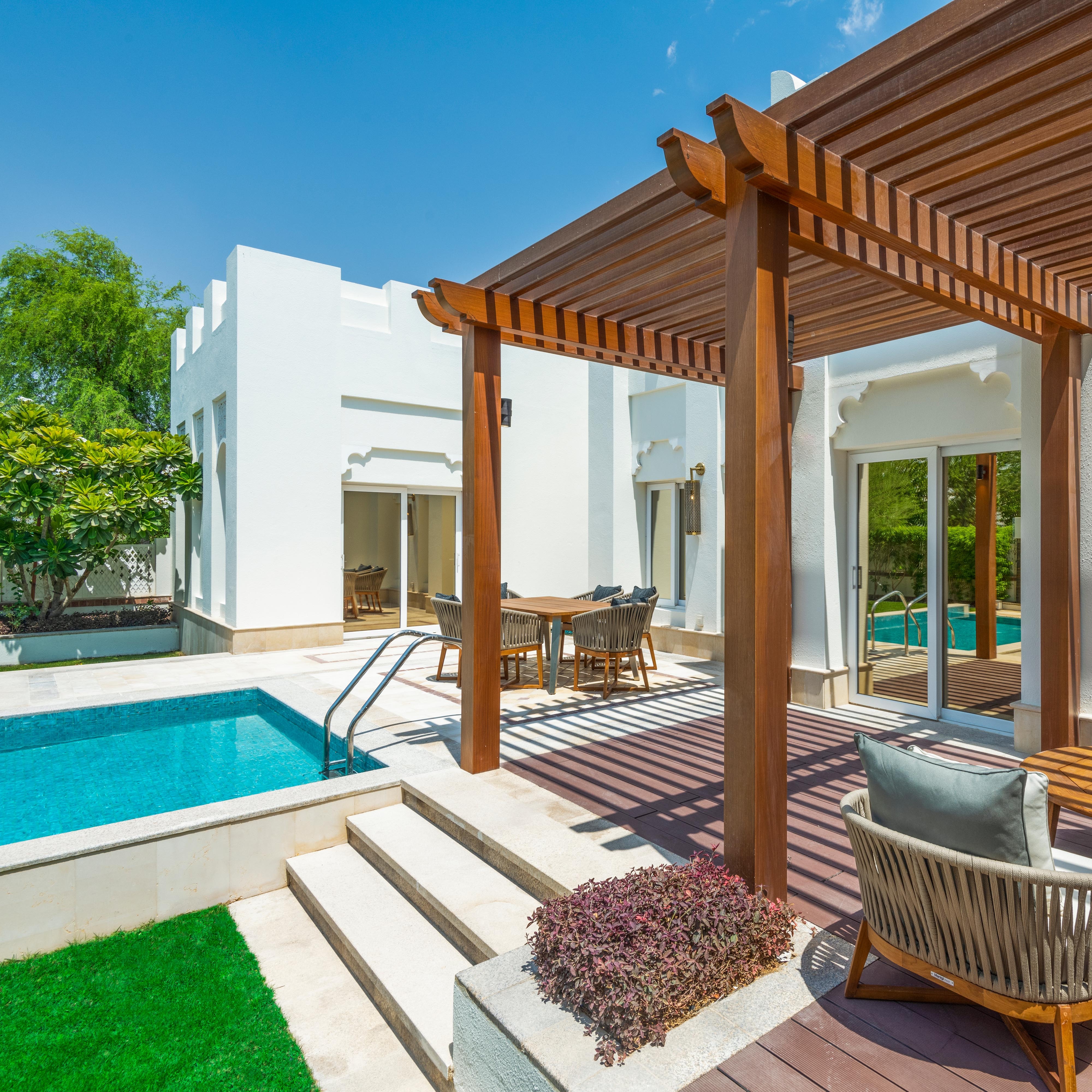 تقع الفيلات ذات المسبح الخاص في حدائق المنتجع لتوفير أقصى درجات الخصوصية. سواء كنت تبحث عن ملاذ في مكان إقامة فخم أو لقضاء وقت ممتع مع العائلة أو الأصدقاء، يمكنك الاسترخاء في حديقتك الخاصة ومسبح الغطس.
