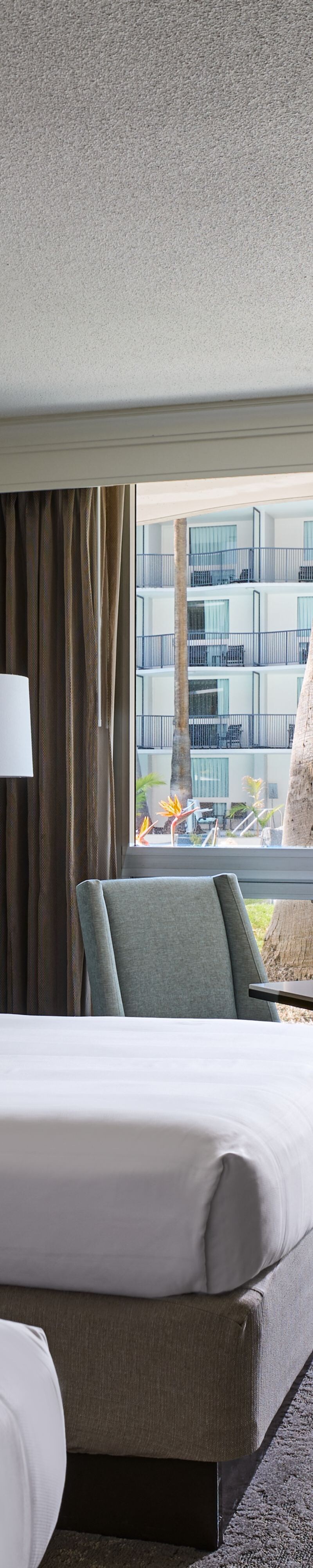 Unsere Unterkünfte in der Nähe des Flughafens Los Angeles sind allesamt in einem zeitgenössischen Stil gehalten, der jeden Moment Ihres Aufenthalts aufwertet. Ganz gleich, ob Sie sich für ein Hotelzimmer oder eine Suite in Los Angeles entscheiden: Sie sind von aufwendig gestalteten Details und beispiellosen Annehmlichkeiten umgeben, die für einen angenehmen und unbeschwerten Aufenthalt sorgen. In vielen Zimmern ist die Aussicht ohnegleichen. Durch schalldichtes Glas können Sie auf den Start- und Landebahnen des Flughafens LAX beobachten, wie Flugzeuge landen und abheben. Alternativ können Sie sich von der sonnigen und ruhigen Umgebung unseres Resort-Pools vereinnahmen lassen.