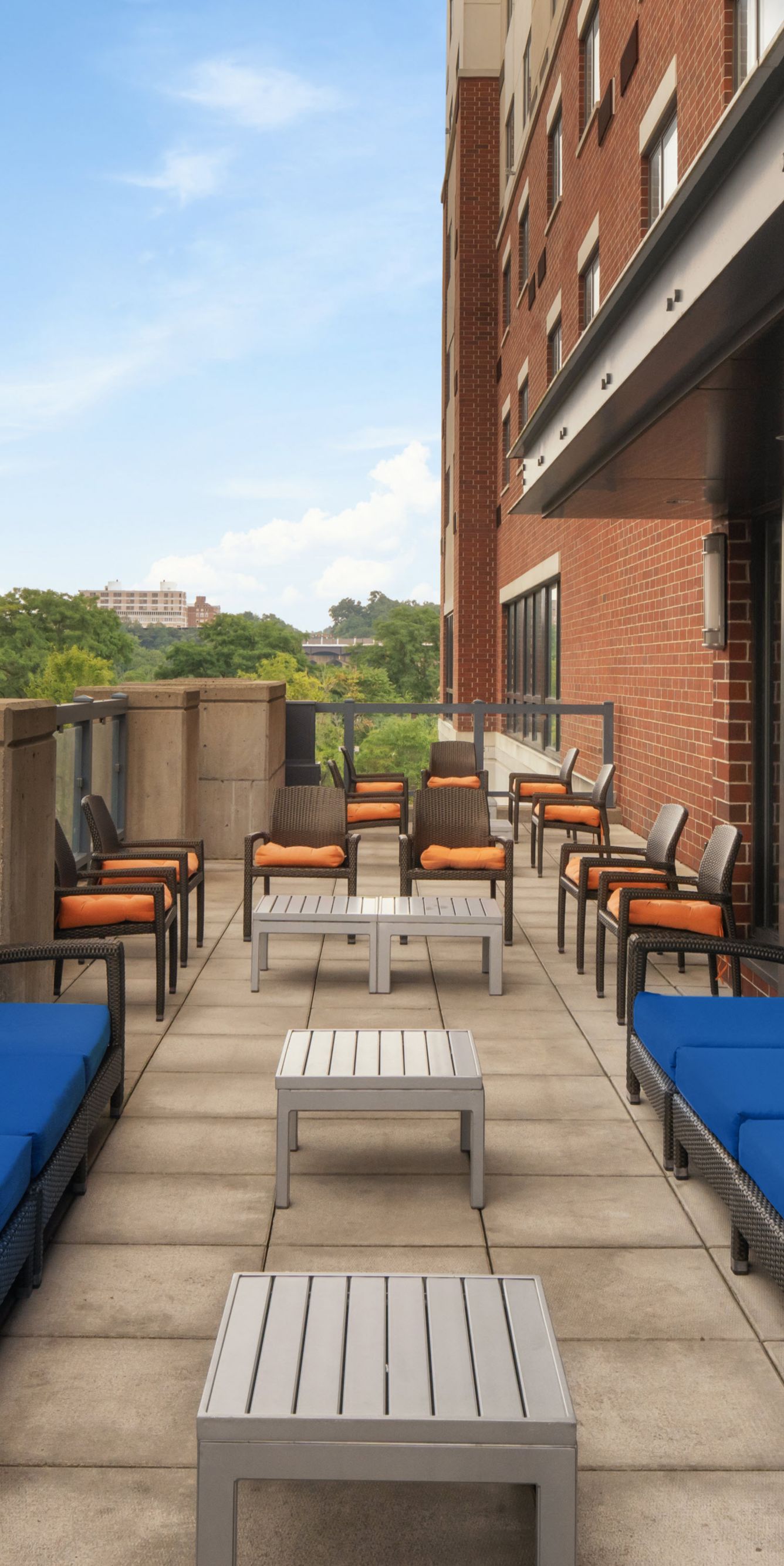 Enjoy an event on the patio located just off the lobby where attendees can have views of the National Park behind the hotel and the Akron Skyline in front of the hotel. This outdoor space can host up to 25 guests and provides an atmosphere of fun and elegance with the string lights surrounding the patio.