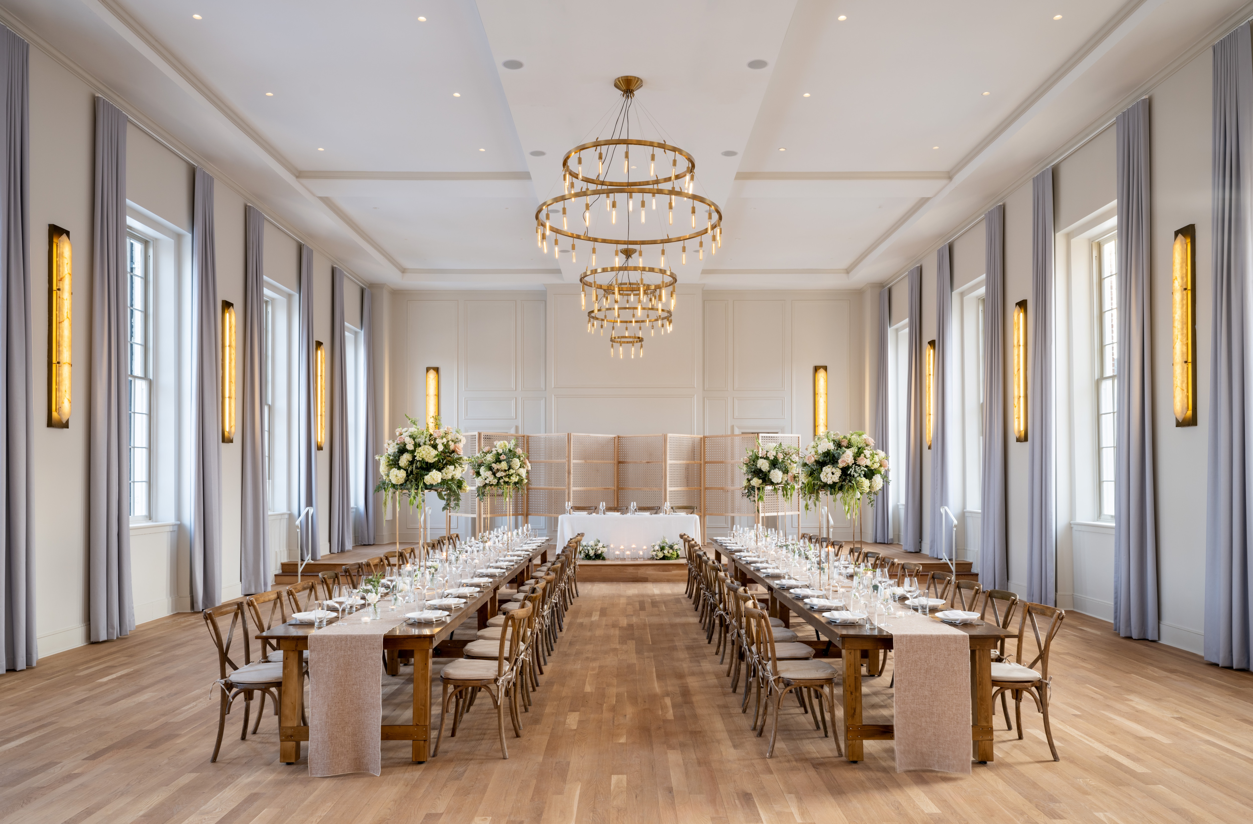 The Academy Ballroom at Visitation Hotel offers 2,714 sq ft of refined elegance. With soaring windows and timeless details, it's a sophisticated setting for gatherings that feel both intimate and grand. A space where stories are shared, milestones celebrated, and every moment feels beautifully considered.